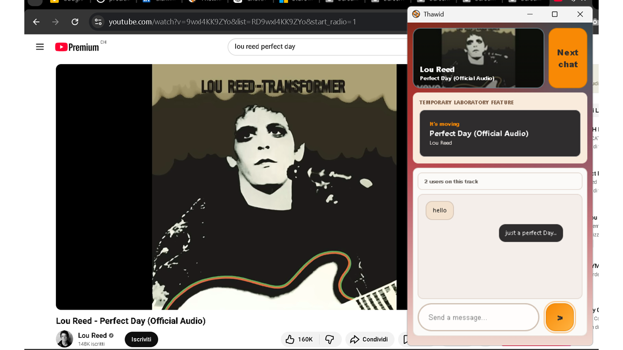 Thawid legge il brano in riproduzione e si attiva quando la coincidenza temporale e reale. Il focus non e il gusto musicale generico, ma la stessa traccia nello stesso istante.